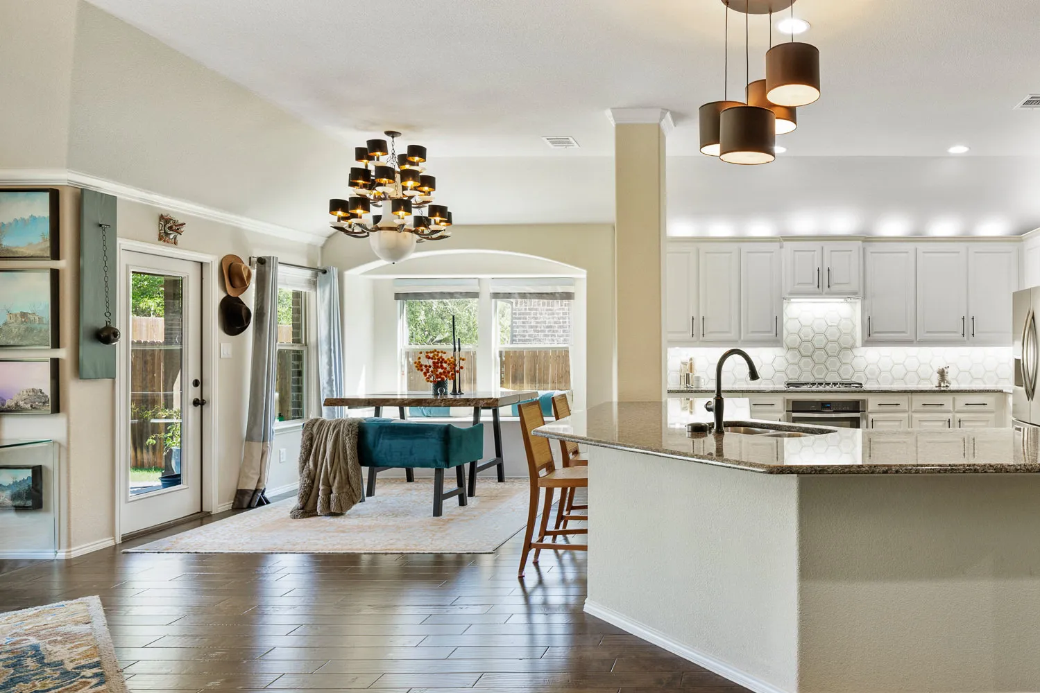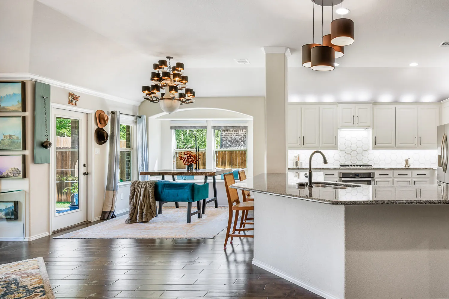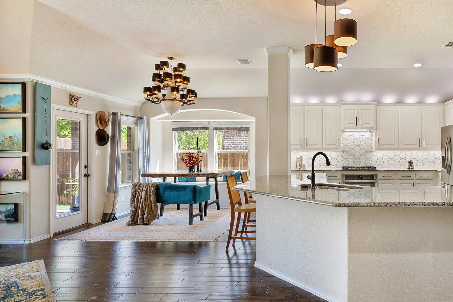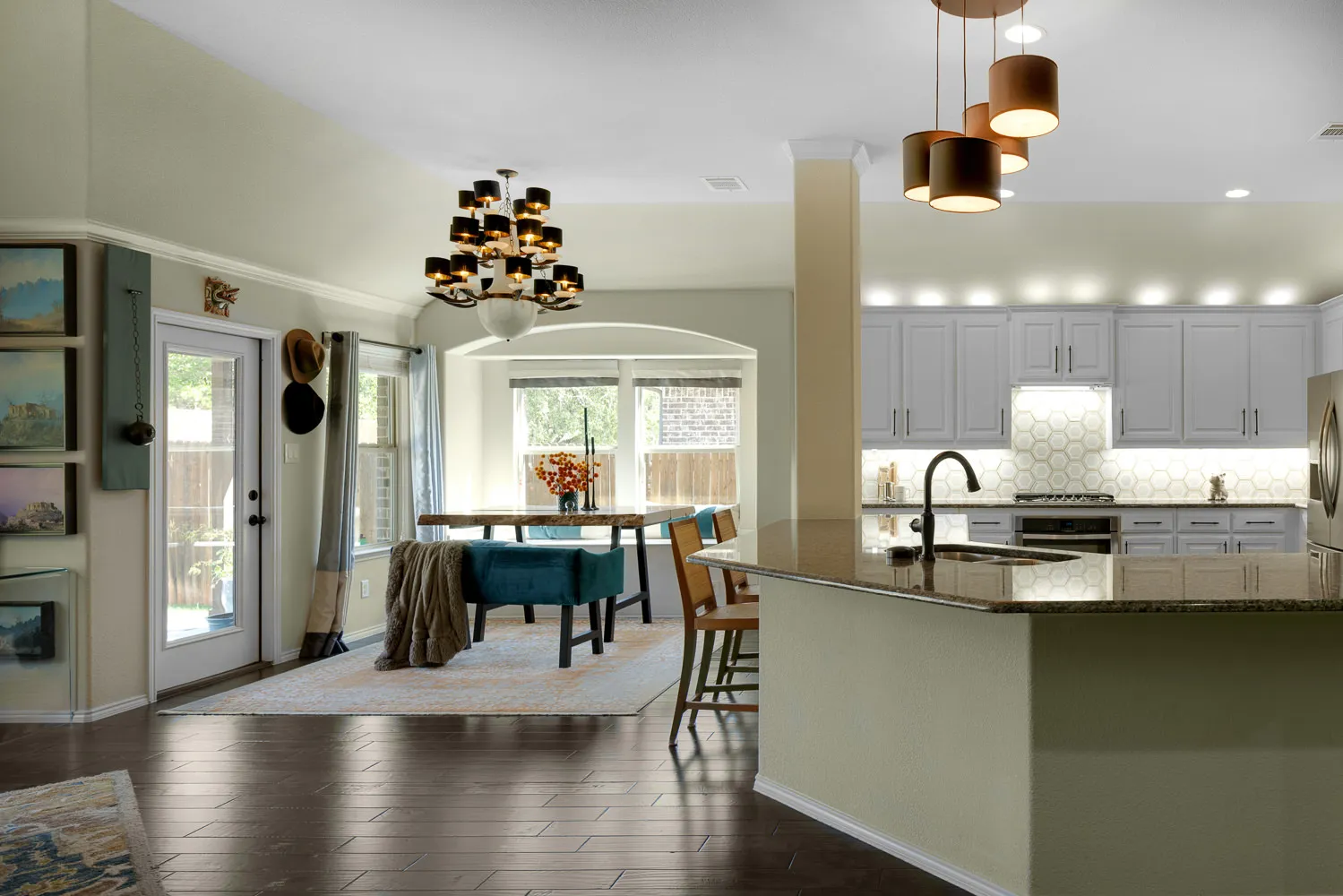 As you can see from our samples digital processing dramatically impacted the images. The colors are not crisp and vibrant or even accurate to the actual color of the room. Whites bleed of into grey. Natural soft shadows were rendered with harsh lines or completely removed. The floor glare creates a distraction covering the natural wood tones of the floor. The detail of the marble backsplash is gone.