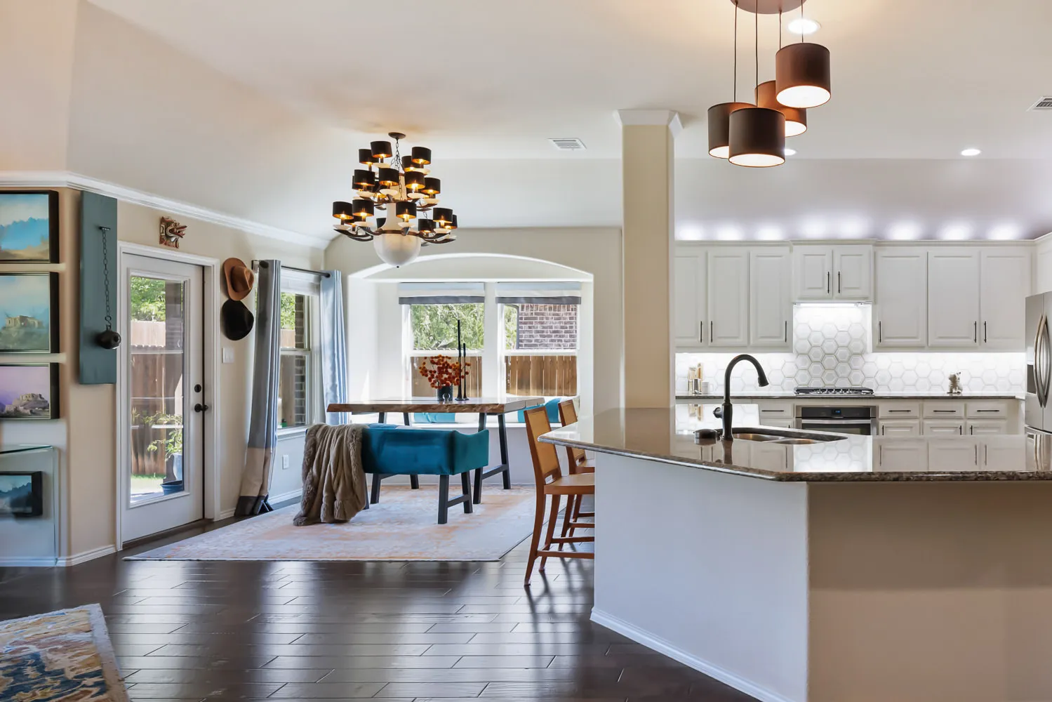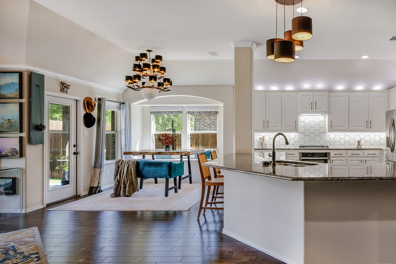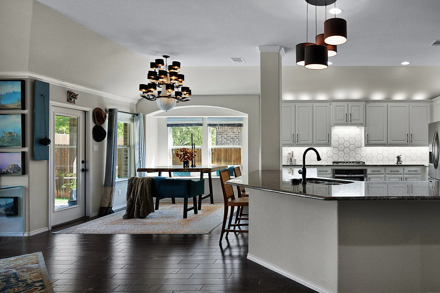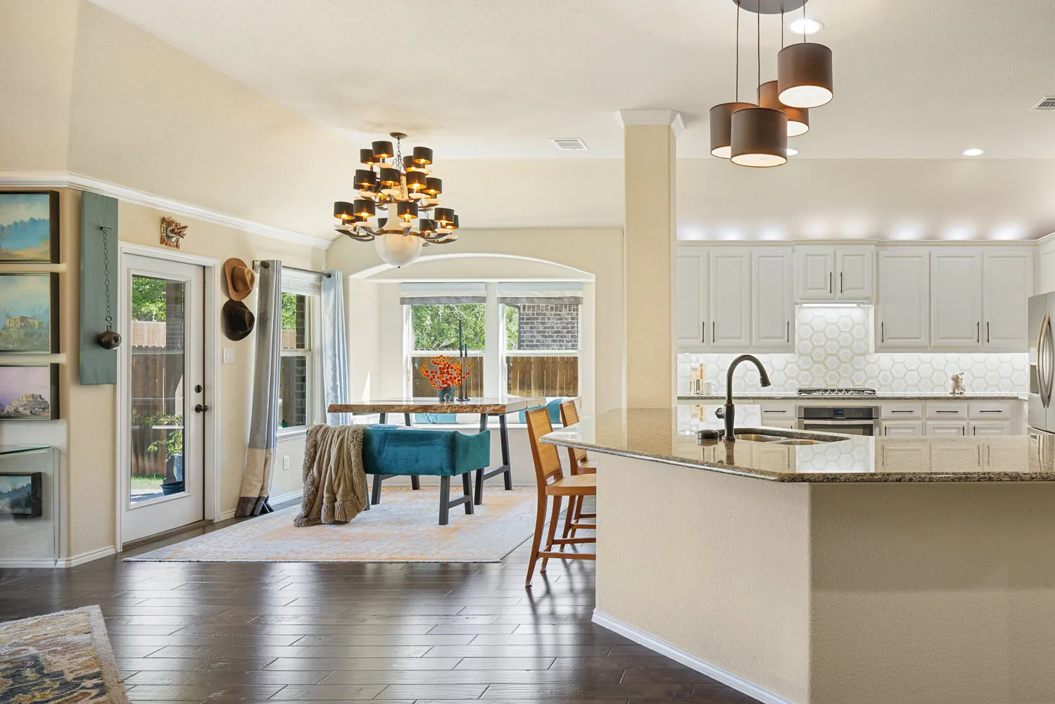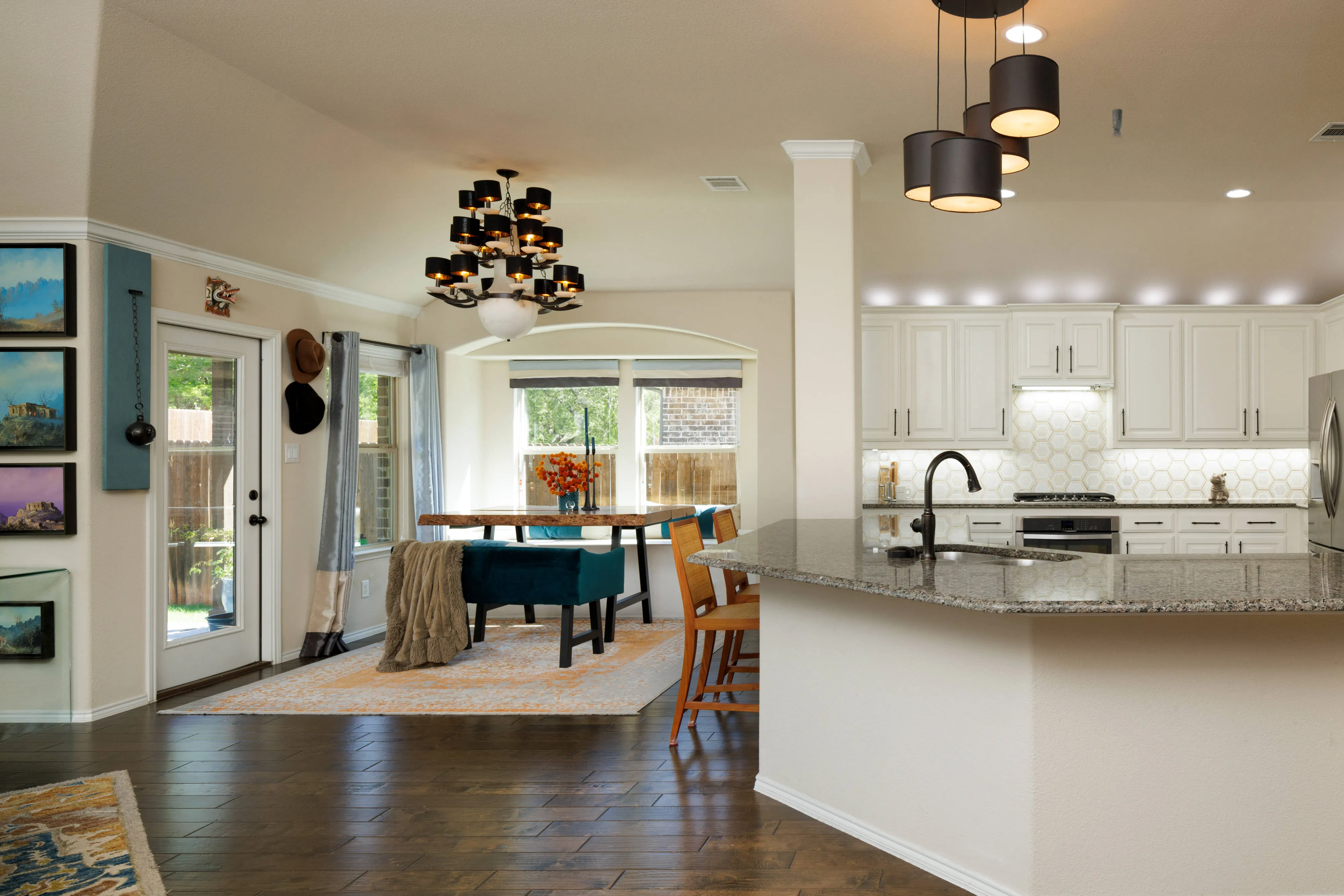 As you can see from our samples digital processing dramatically impacted the images. The colors are not crisp and vibrant or even accurate to the actual color of the room. Whites bleed of into grey. Natural soft shadows were rendered with harsh lines or completely removed. The floor glare creates a distraction covering the natural wood tones of the floor. The detail of the marble backsplash is gone.